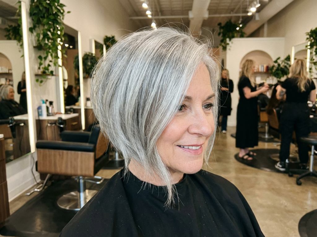 Valorisez votre transition vers le blanc, car une structure nette rend le gris très élégant. C’est un choix fort et assumé qui rajeunit l’allure. Fini le temps où on cachait ses cheveux blancs !